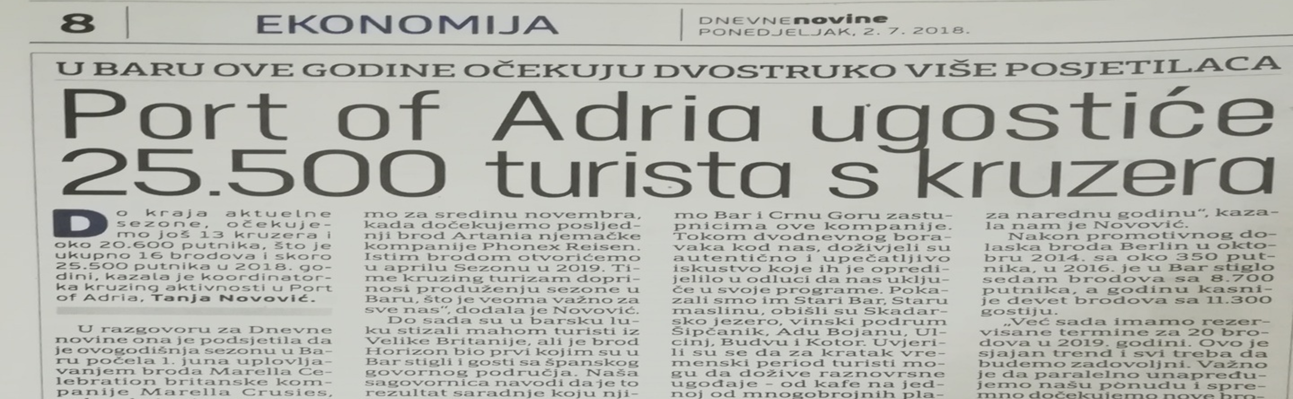 “So far, we have mostly welcomed tourists from Great Britain. However, for the first time in Bar, with ship Horizon, tourists from the Spanish speaking area have come to Bar. Cooperation with Pullmantur company has been established owing to our parent company Global Ports Holding which cooperates with Pullmantur in other cruise ports which GPH operates.